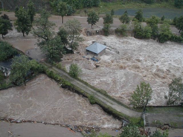 Hochwasserfotos vom Wasserkraftwerk am 13. August 2002