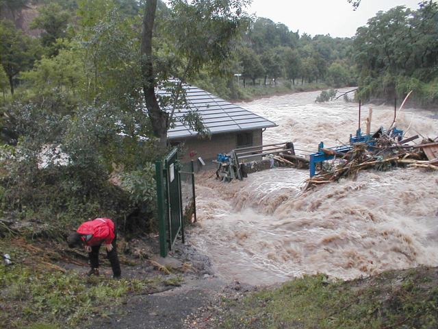 Hochwasserfotos vom Wasserkraftwerk am 13. August 2002