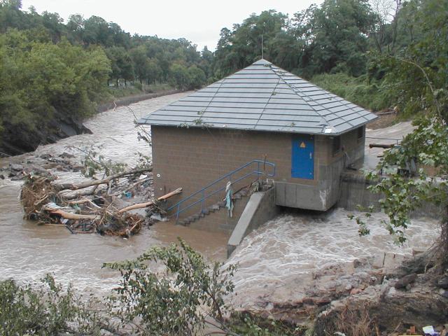 Hochwasserfotos vom Wasserkraftwerk am 13. August 2002